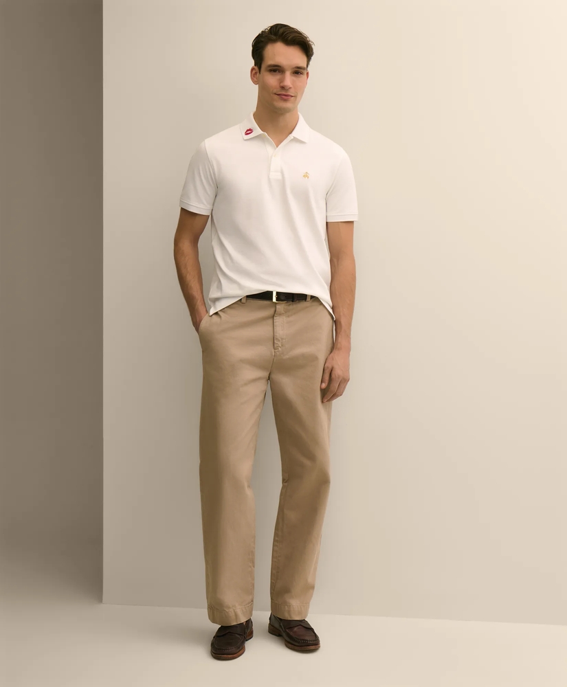 As we celebrate Marilyn Monroe's 100th birthday in 2026, we honor the visionary behind the icon. A woman who didn't just shape culture, she rewrote its rules. This centennial celebration honors Marilyn as a bold entrepreneur, boundary-breaker, and the original influencer whose impact continues to spark innovation across fashion, beauty, business, and global culture. A century later, her star doesn't just shine, it leads the way. To celebrate the legacy of Marilyn Monroe, we're introducing an exclusive collaboration of Brooks Brothers items, playfully featuring her signature red kiss. Our classic polo, in washed Supima® cotton knitted with spandex for stretch, is embroidered with red lips on the collar, in honor of Marilyn.