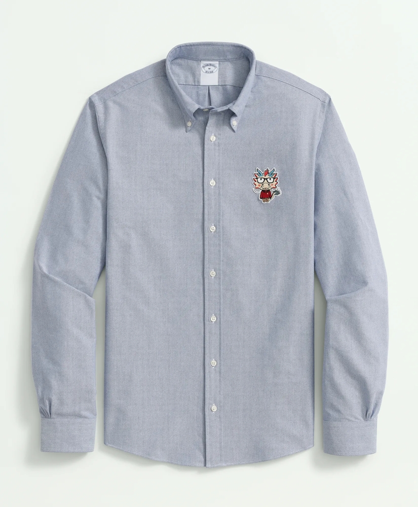 We're honoring good luck, strength and health this Year of the Dragon with our playful chest patch that adorns 100% cotton oxford cloth. Additional features include our signature button-down collar and six-pleat shirring.