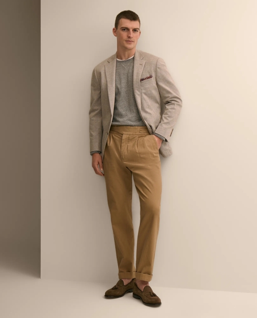 Find easygoing elegance and everyday sophistication with casual pants for men by Brooks Brothers. Create a versatile business-casual ensemble or craft the perfect semi-dressy look for after-work hours and weekend occasions, starting with our expertly tailored assortment of men's chino pants, timeless khaki pants, and premium denim jeans. Pair your favorite styles with one of our men's dress shirts or casual button-downs for a refined finish, and complete the look with men's accessories like belts, watches, or loafers. Our casual pants offer the ideal balance of signature Brooks Brothers refinement with an approachable style that transitions seamlessly across all occasions.
