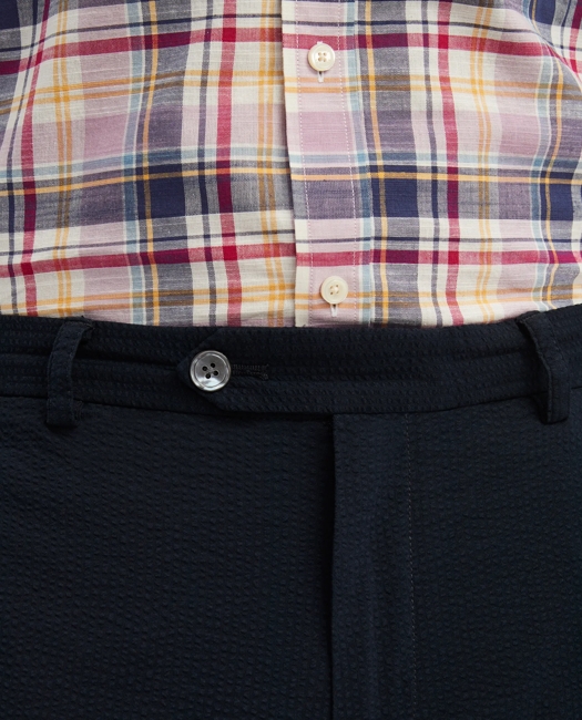 Our mission to find the perfect combination of style and fit shows in every piece we craft so you can look for casual pants cut just the way you like. Our Milano and Slim fits offer a more modern, tailored look, while our Elliot and Hudson styles feature a relaxed, laid-back cut. Dress things up with the pleated and cuffed looks of our Thompson and Elliot fits, or select a pair of our popular plain-front Clark fit. For added comfort, select a pair of men's stretch pants in classic chino, golf or men's stretch jeans styles. Most of our men's seersucker pants, chino pants and other casual pants styles at Brooks Brothers come in a variety of fits so you can easily get the precise look and fit you want