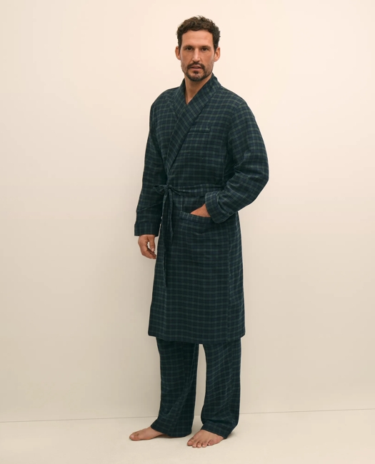 Brooks Brothers carries a versatile assortment of luxury sleepwear for when you're done with your suit for the day. Choose from men's sleepwear including pajamas — classic notch-collar tops, drawstring-waist pants and shorts — personalized robes, lounge pants and sets, nightshirts and more. Much like our boxers, men's sleepwear at Brooks Brothers is crafted from the softest cotton materials like pure Supima® cotton and cotton broadcloth in timeless designs, stripes, plaids and colors. A number of men's nightwear items also feature superior wrinkle-resistant fabric, making them exceptionally easy to maintain.