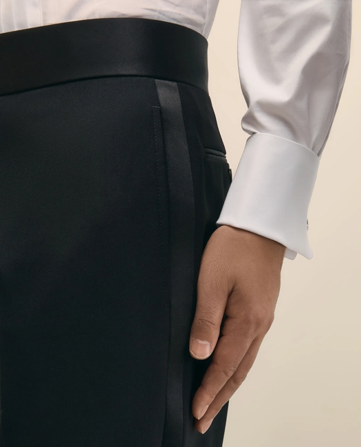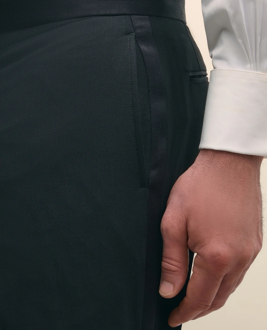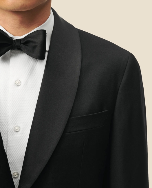 Redefine formal dress for men with Brooks Brothers' exquisite collection of men's tuxedos. Tailored to perfection for your most distinguished occasions, our elegant selection of men’s formal wear captures the delicate balance of classic style and modern sophistication. Choose from a range of tuxedos for men, including tuxedo separates and accessories, meticulously crafted from premium materials such as pure wool and velvet. Our tuxedo pants and jackets come in quality cuts, from modern one-button and two-button styles to traditional double-breasted designs. With a variety of cuts and sizing options, there's a fit to suit every body type. Select a timeless black tuxedo or venture into more contemporary colors and prints like navy, white, and tartan to make a bold statement. Complete your formal look with our refined accessories, including men’s ties, cummerbunds, tuxedo studs, gloves, and more, all impeccably curated to add the perfect finishing touch to your ensemble. Experience unmatched sophistication and style with Brooks Brothers' men's formal wear collection.