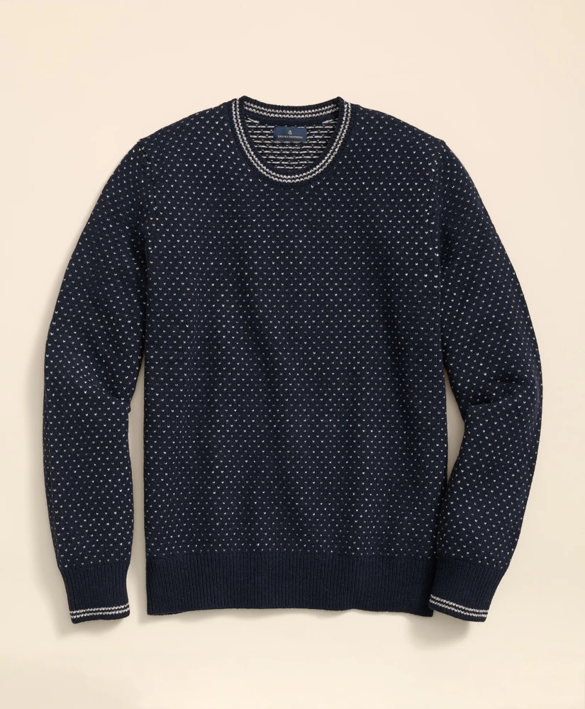 We rendered a classic dot-jacquard pattern in a perfectly soft merino-wool blend you'll love wearing this season and many to come. We finished with a signature touch: our founding year, 1818, expertly knit into the back neckline.