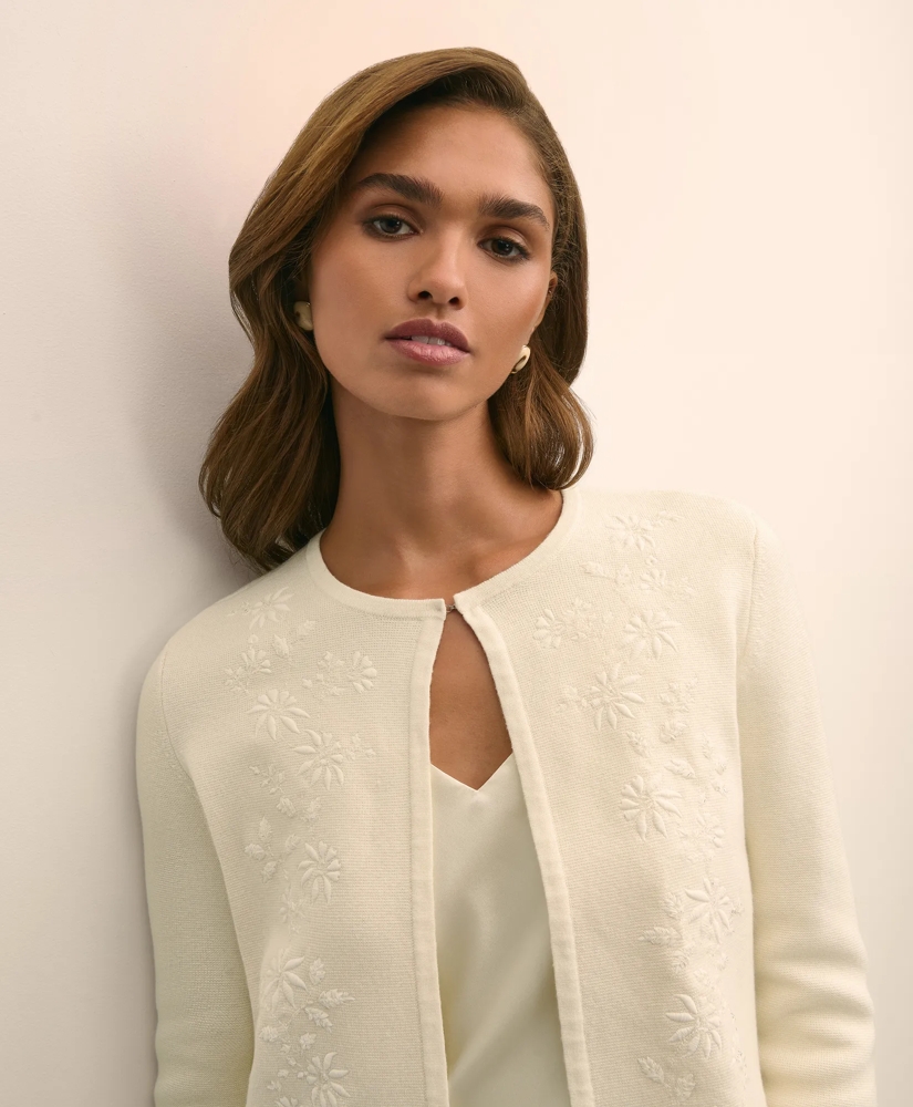 Merino-Wool-Cotton Blend Floral Embellished Cardigan