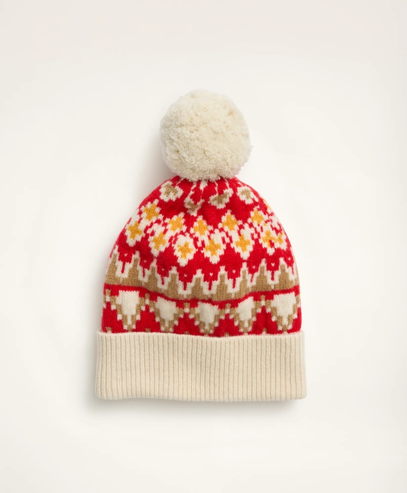 A sweet pom pom adorns our classic ribbed-knit beanie featuring a vintage-inspired Fair Isle pattern in its 100% Italian merino wool construction.