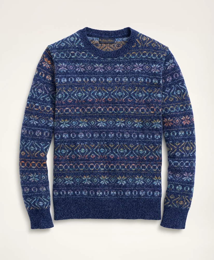 Space-dyed rainbow yarn and a classic Fair Isle intarsia pattern combine for a pop of mood-boosting color in our archival merino wool sweater. Additional features include ribbing detail at the cuffs, hem, and neckline.