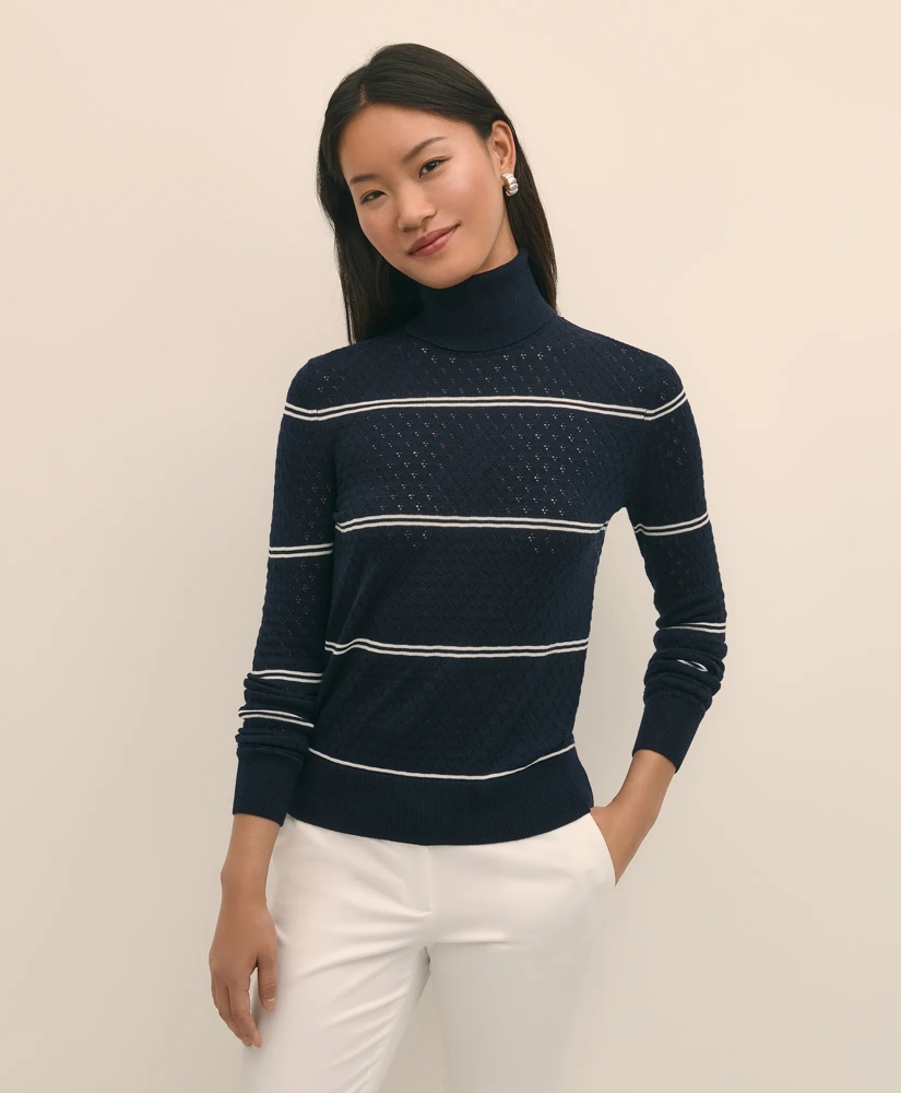Merino Wool Striped Pointelle Turtleneck