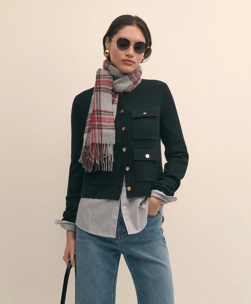 Equal parts cardigan and jacket, our versatile style is crafted from 100% fine merino wool spun by Italy's renowned Filatura Tollegno. The structured silhouette features four front pockets, each accented with our signature gold-tone metal fleece-emblem buttons for a touch of iconic, heritage style.