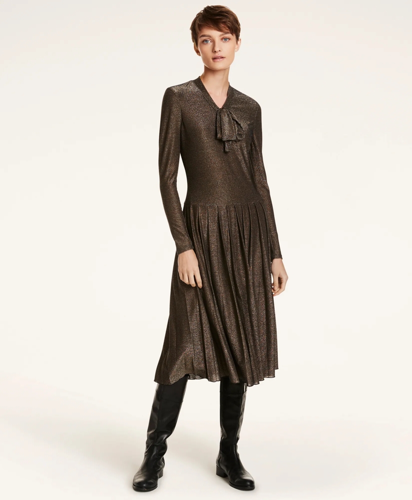 Metallic gold-thread is knit into this jersey dress for day-to-night style that shines.