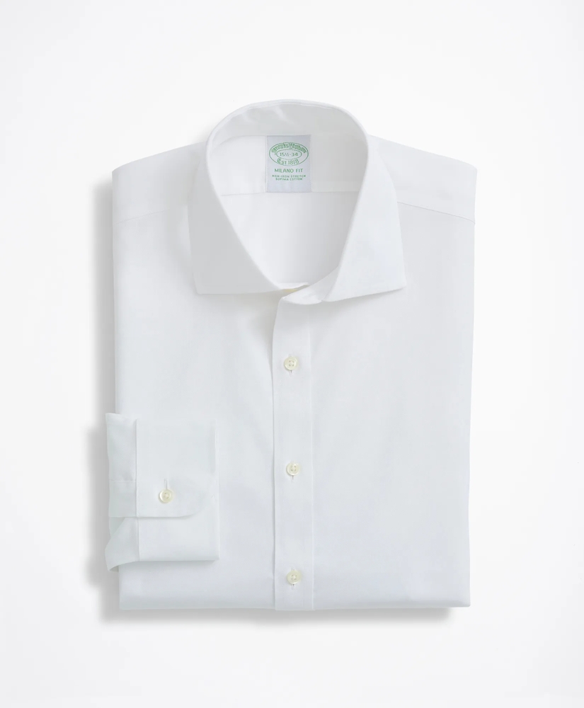 Our non-iron dress shirt is crafted from cotton broadchloth and is finished with the established Ainsley collar to ensure a professional look. It is specially treated to resist wrinkles, and our signature 6-Pleat Shirring® at the barrel cuffs and pucker-free seams reinforce Brooks Brothers' dedication to a well-made dress shirt. Additional features include a French front. Machine wash according to care instructions for best performance. Imported.