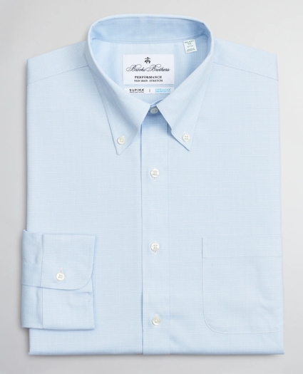 Milano Slim-Fit Dress Shirt, Performance Non-Iron with COOLMAX®, Button-Down Collar Twill Check