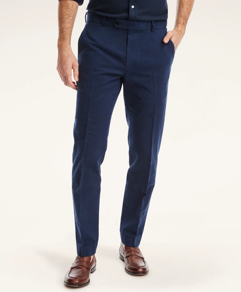 Comfortable style gets an upgrade in soft washed cotton woven with pure linen and just-right stretch. Our signature oxford-cloth interior details mark a Brooks Brothers classic.