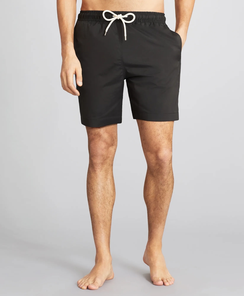 An essential for your next vacation, beach trip or day by the pool, these classic swim trunks are made with quick-dry stretch fabric which has been brushed for an ultra-soft feel. Elastic waistband with drawstring, on-seam side pockets and a rear pocket with secure hoop and loop closure. Water-repellent. UV protection. Mesh interior. Machine wash according to care instructions for best results. Imported.