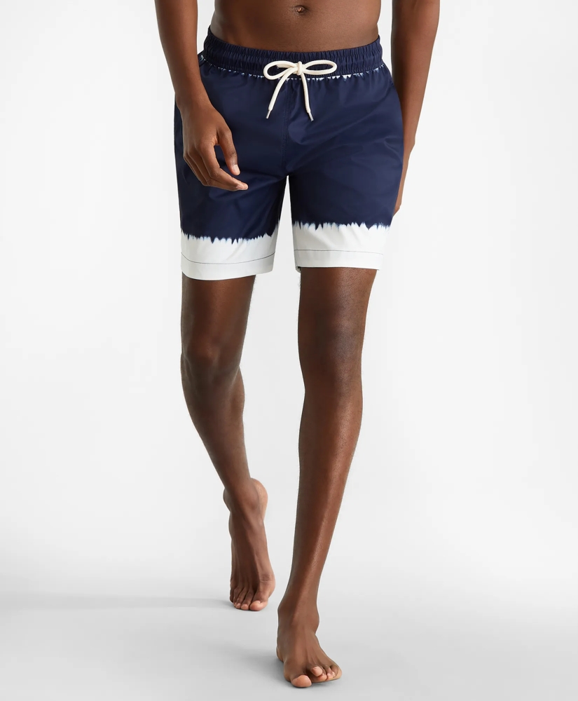 An essential for your next vacation, beach trip or day by the pool, these classic swim trunks are made with quick-dry stretch fabric which has been brushed for an ultra-soft feel. Elastic waistband with drawstring, on-seam side pockets and a rear pocket with secure hoop and loop closure. Water-repellent. UV protection. Mesh interior.