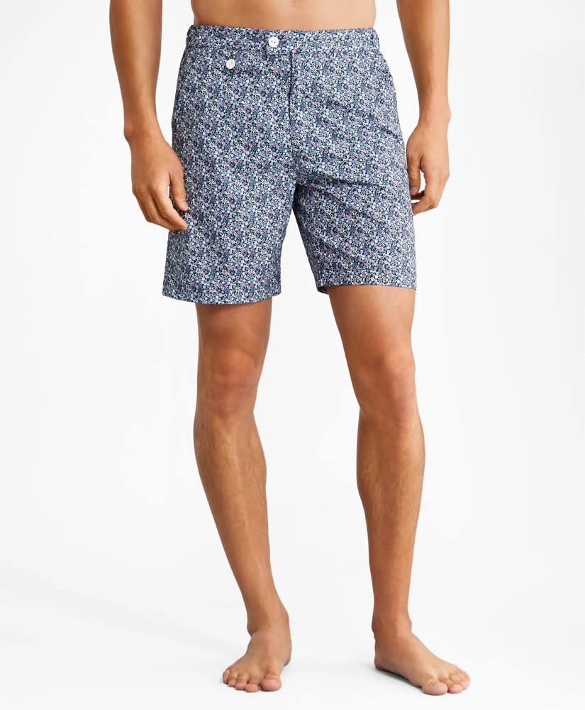 An essential for your next vacation, beach trip or day by the pool, these classic swim trunks are made with quick-dry stretch fabric which has been brushed for an ultra-soft feel. Designed to be easily worn from the beach to the bar with an elastic waistband and button closure, buttoned coin pocket, quarter-seam side pockets and a rear zip pocket. Water-repellent. UV protection. Mesh interior.