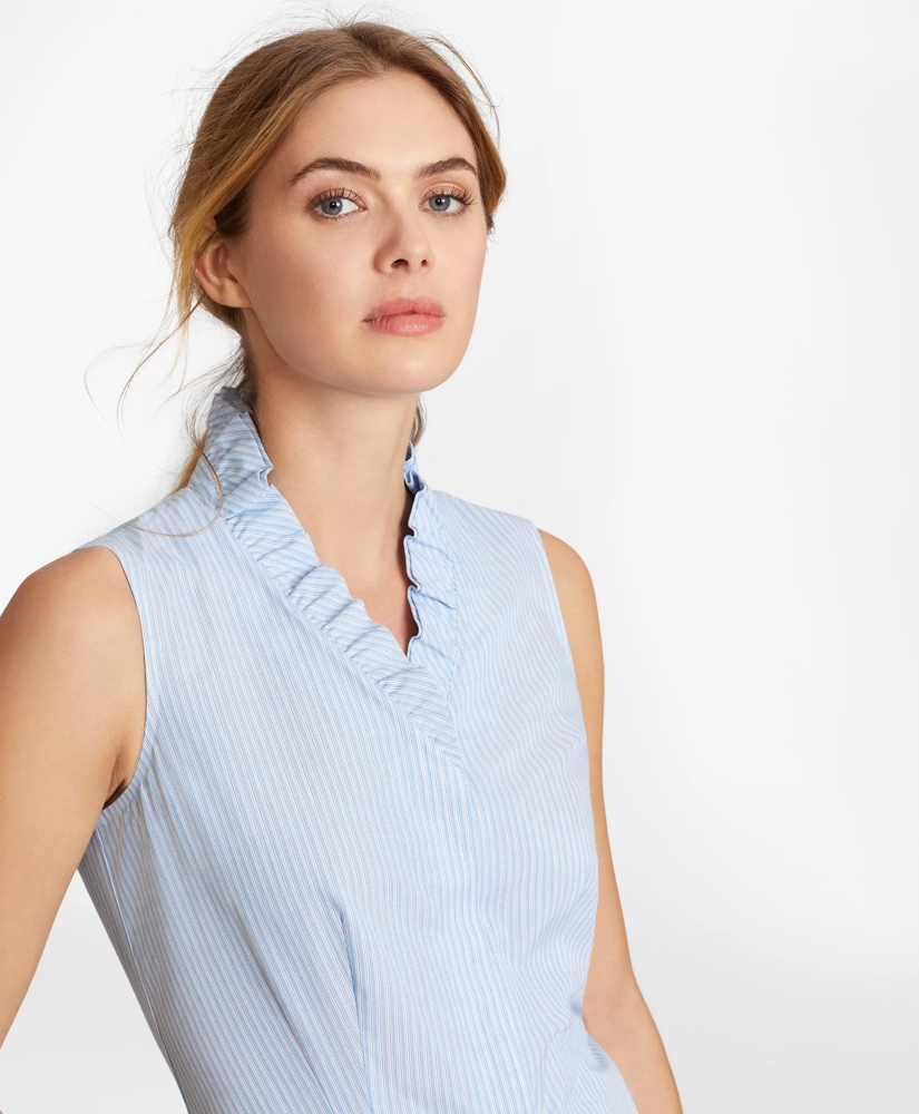 Non-Iron Striped Supima® Cotton Ruffle-Collar Sleeveless Blouse