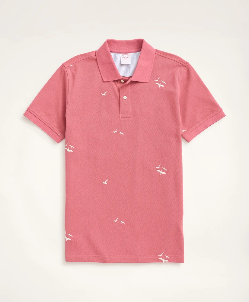 An embroidered seagull pattern makes us think of weekends at the cape and favorite beach vacations, channel your favorite summer memories with ultra-soft cotton pique.
