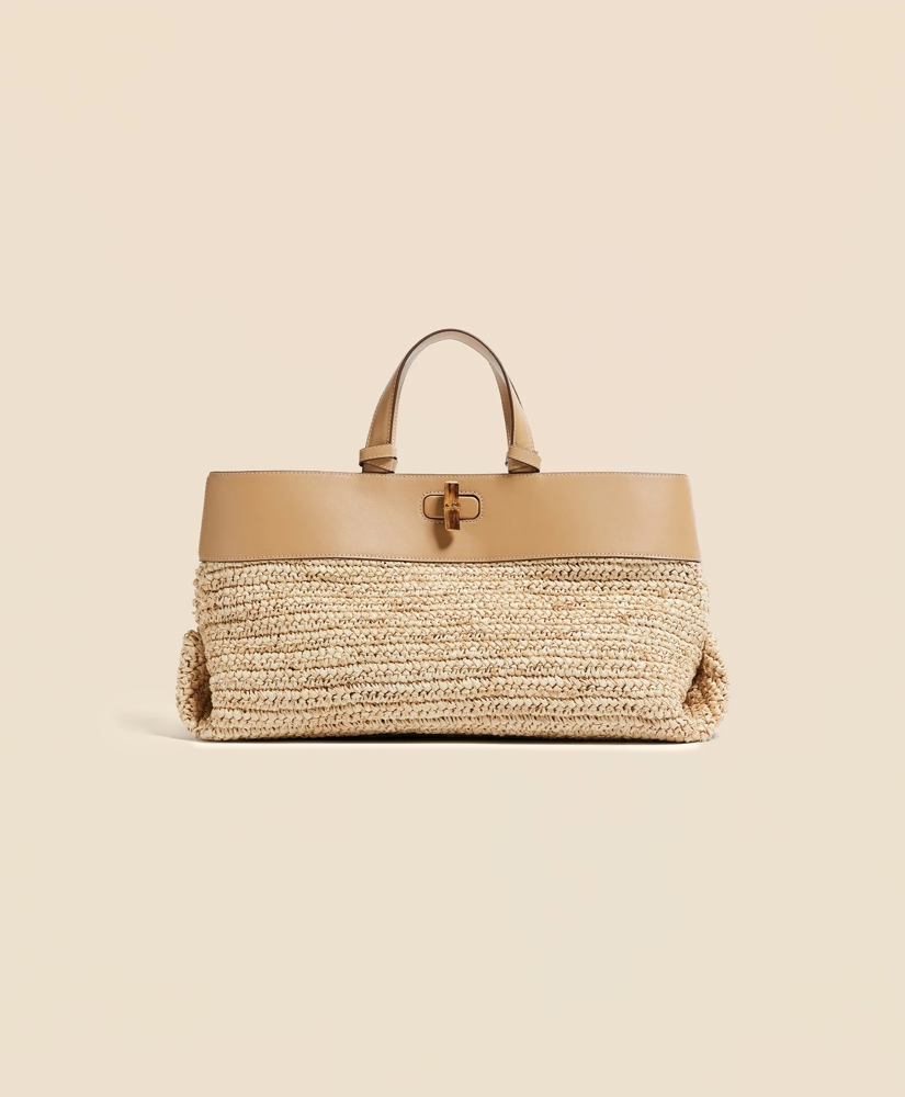 Timeless classic designs take center stage with hand-crochet raffia accented with rich calfskin and bamboo. The Park speaks to an uptown sensibility for a modern classic in the making.