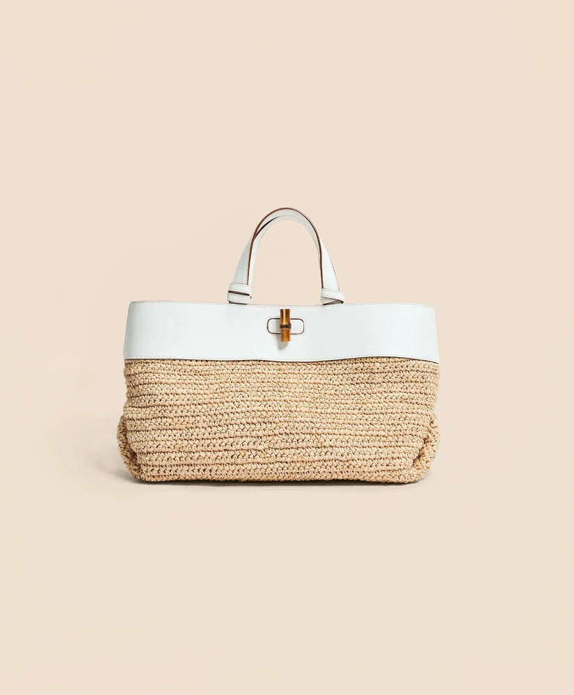 Timeless classic designs take center stage with hand-crochet raffia accented with rich calfskin and bamboo. The Park speaks to an uptown sensibility for a modern classic in the making.