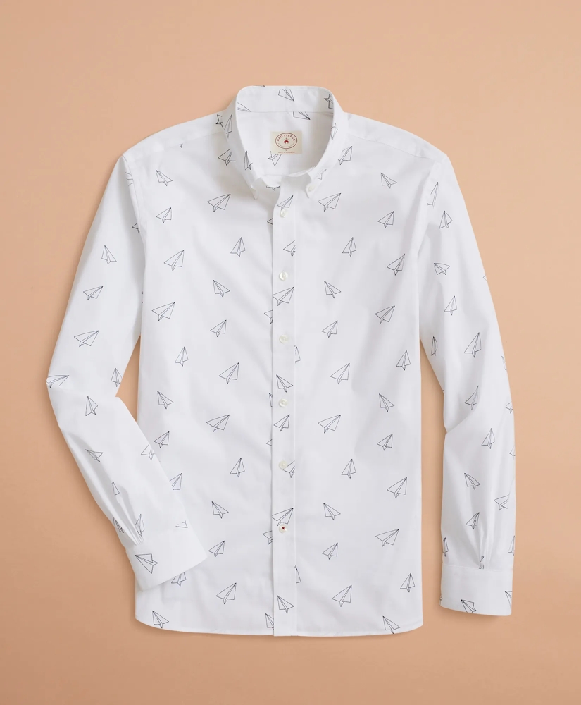 Designed to go where you go, our Red Fleece Performance Series features wrinkle-resistant, easy-care stretch fabric and moisture-wicking properties so you can stay comfortable and look your best. This paper-airplane-pattern poplin shirt, crafted from a cotton blend, offers lightweight refinement with a button-down collar, our signature 6-Pleat Shirring® at the barrel cuffs and a box pleat at the back yoke. Logo tab at the lower hem.