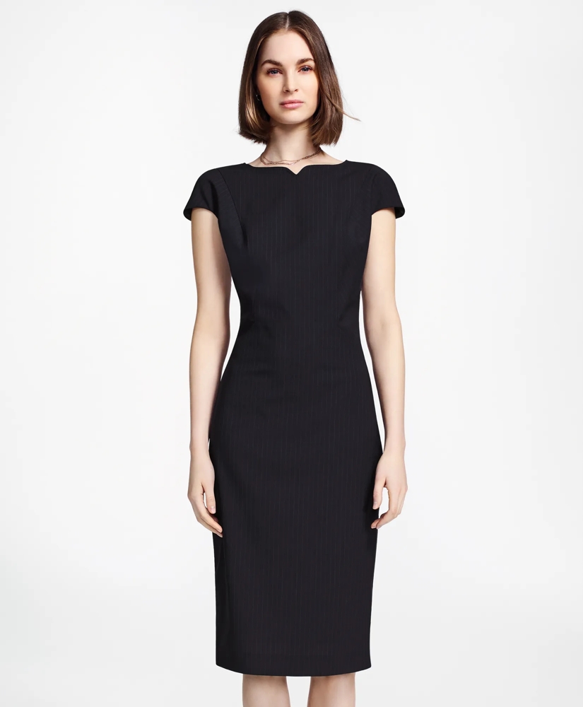 Pinstripe Stretch Wool Sheath Dress