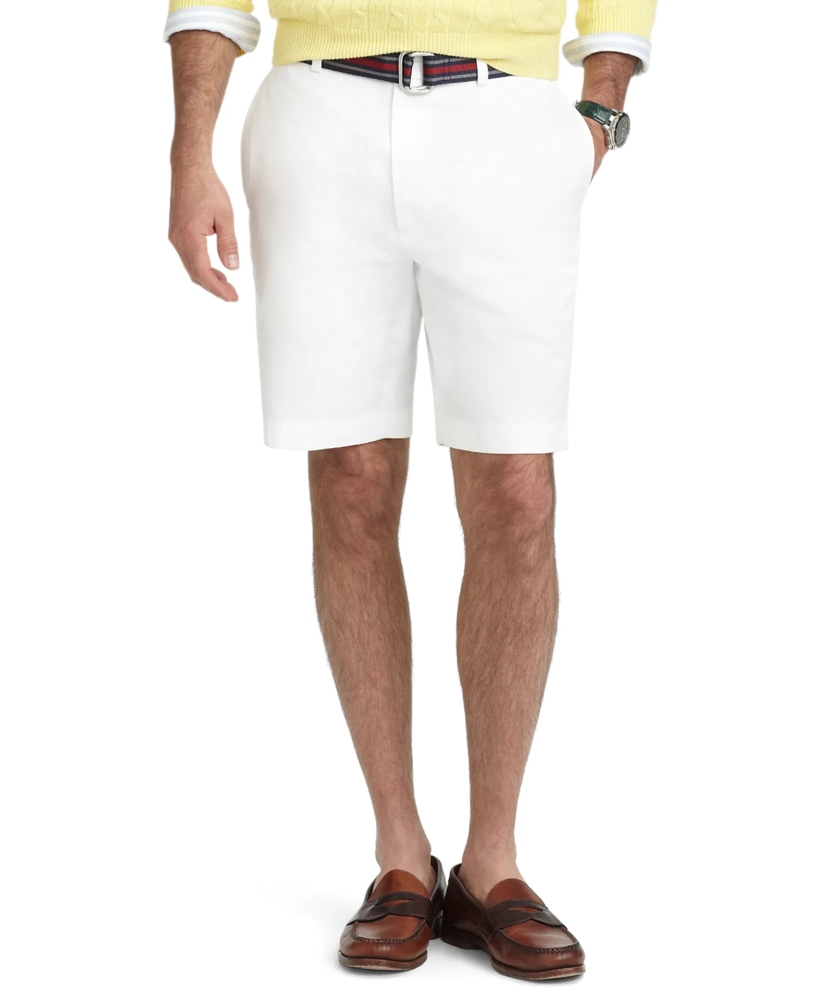 Pure lightweight cotton. Plain-front with zip closure. Taped seams for a cleaner finish. 9" inseam. Machine wash. Imported.