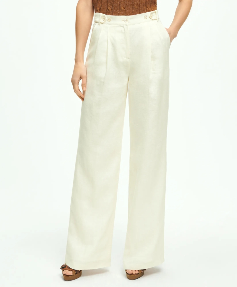 Pleated Wide-Leg Linen Trousers