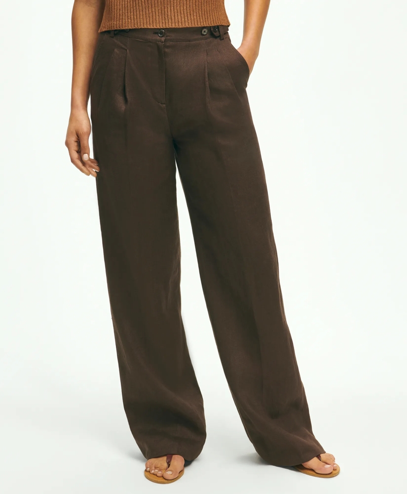 Pleated Wide-Leg Linen Trousers