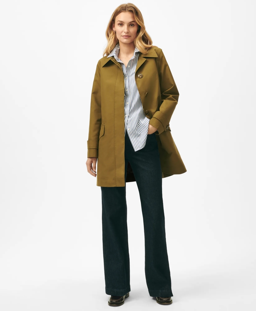 With a vintage-inspired collar in goes-with-everything olive, this raincoat manages inclement weather days in style. You'll stay warm, dry and chic, with our water-resistant exterior. We finished the look with tattersall-patterned interior in a nod to heritage style and attention to detail.