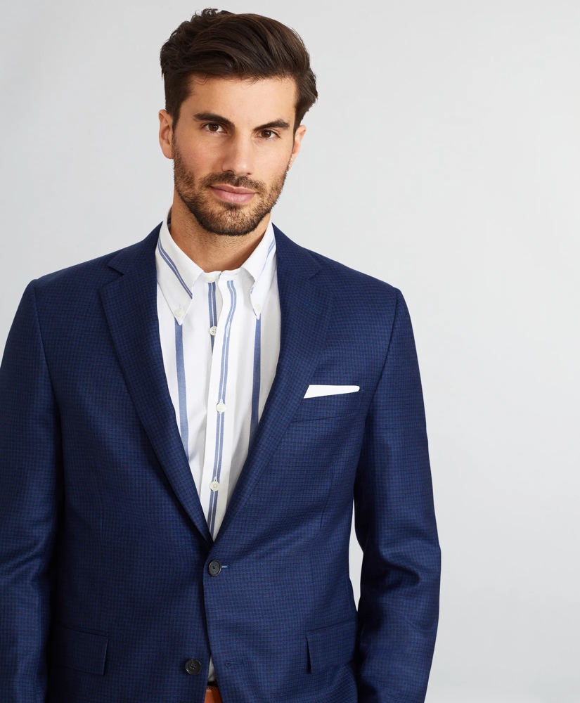 Crafted from super 130's wool and cashmere twill blend woven by E.Thomas in Italy. Regent fit two-button with a center vent, flap pockets and finished sleeves. Fully lined. Dry clean. Imported.