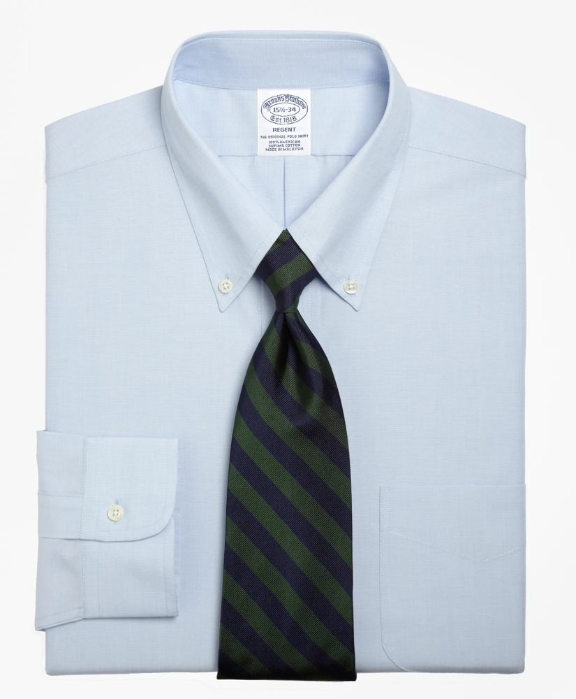 This dress shirt is crafted from American-grown Supima® cotton end-on-end broadcloth. The button-down collar, a Brooks Brothers innovation, has been the most imitated item in fashion history since we introduced it in 1900. Our signature 6-Pleat Shirring® at the barrel cuffs and pucker-free seams reinforce Brooks Brothers' dedication to a well-made dress shirt. Additional features include a left chest pocket and a center back pleat, which continue the nearly 200-year tradition of Brooks Brothers setting the gold standard in men's dress shirts. This shirt is machine washable for easy care. Imported.