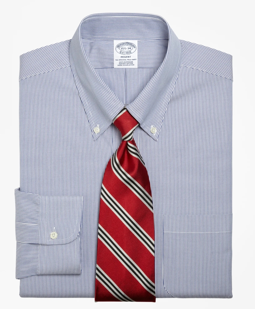 This dress shirt is crafted from American-grown Supima® cotton pinpoint. The button-down collar, a Brooks Brothers innovation, has been the most imitated item in fashion history since we introduced it in 1900. Our signature 6-Pleat Shirring® at the barrel cuffs and pucker-free seams reinforce Brooks Brothers' dedication to a well-made dress shirt. Additional features include a left chest pocket and a center back pleat, which continue the nearly 200-year tradition of Brooks Brothers setting the gold standard in men's dress shirts. This shirt is machine washable for easy care. Imported.