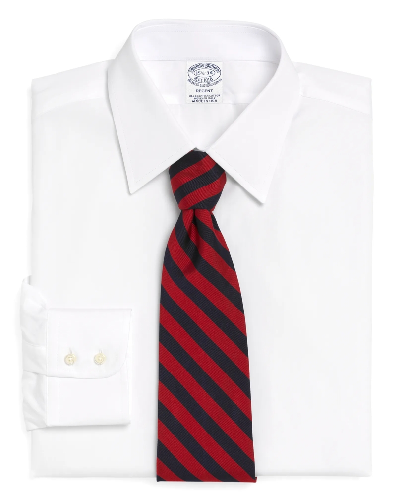 This dress shirt is crafted from pure Egyptian cotton broadcloth, woven in Italy, for unmatched comfort. Finished with a tennis collar, which is a fuller version of the forward point collar and is best paired with a classically styled lapel. Our signature 6-Pleat Shirring® at the double-button barrel cuffs reinforces Brooks Brothers' dedication to a well-made dress shirt. Additional features include a French front placket and a chevron split-back yoke. This shirt is machine washable for easy care. Made in the USA of imported fabric.