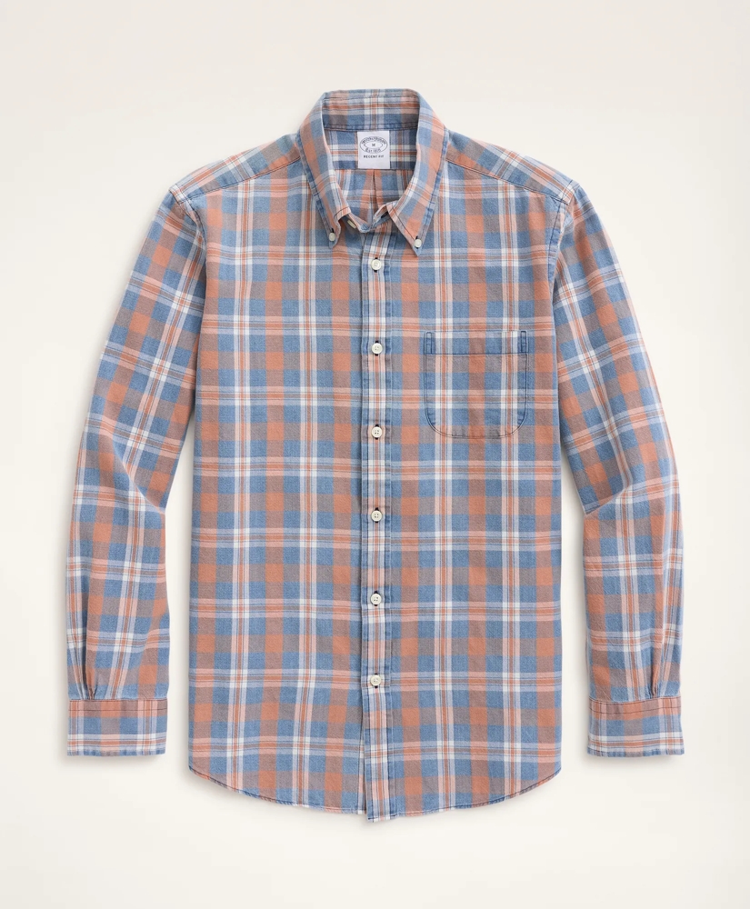 This new shirt combines a plaid pattern you'll typically see in a flannel or poplin style with our perfect Oxford weave and the polo button down collar we invented.
