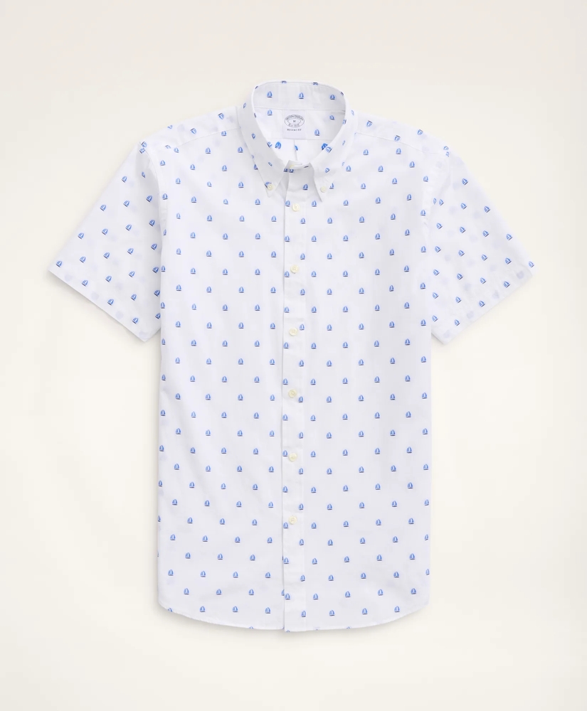 Regent Regular-Fit Short-Sleeve Sport Shirt, Jacquard Sailboat Motif