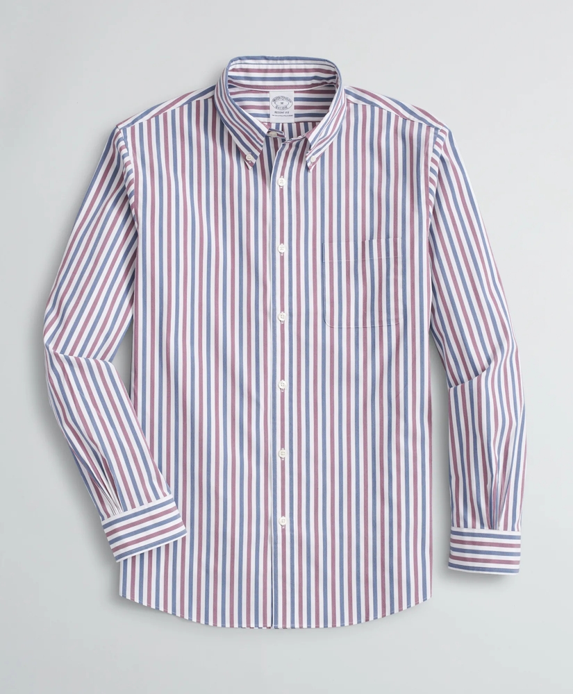 Regent Regular-Fit Sport Shirt, Brooks Brothers Stretch Performance Series with COOLMAX®, Alternating Stripe