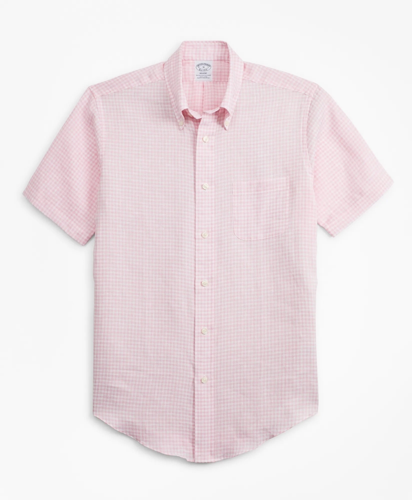 Regent Regular-Fit Sport Shirt, Gingham Irish Linen Short-Sleeve