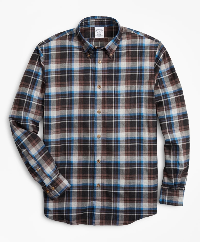 A customer favorite, this sport shirt is a 100% cotton flannel. Brushed for warm and a soft handfeel. Finished with a button-down collar and signature 6-Pleat Shirring® at the barrel cuffs reinforces Brooks Brothers dedication to a well-made sport shirt. Additional features include a left chest pocket. Machine wash according to care instructions for best results. Imported.