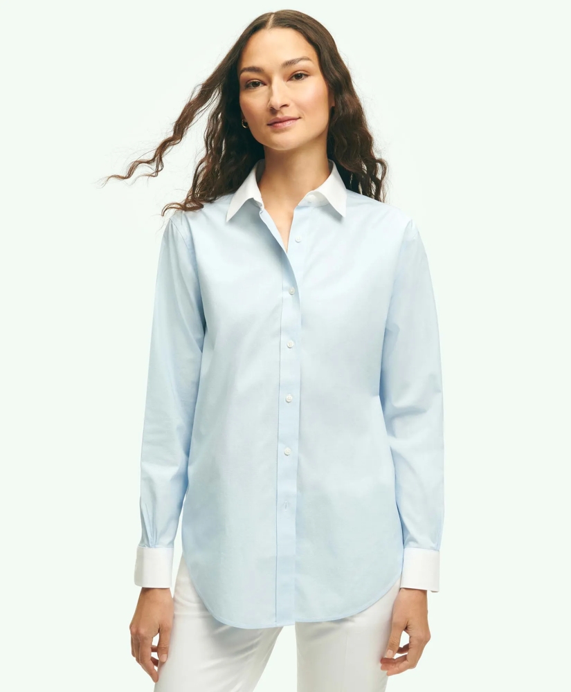 Relaxed Fit Non-Iron Stretch Supima® Cotton Shirt with White Collar & Cuffs