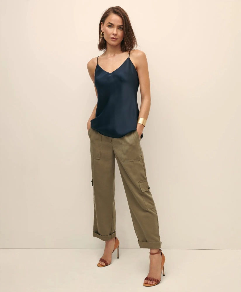 In a flowing fabric that feels, and looks, effortless, our cargo pants offer a sophisticated iteration of the classic style. We finished them with adjustable cuff tabs for a slimmer silhouette option. Pair with white shirts, utility tops and sweaters in transitional temps. They go with everything.
