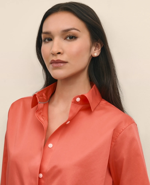Elevate your everyday with our cotton sateen shirt that offers refined texture and a minimalist concealed button-front placket. The relaxed silhouette makes it a perfectly versatile everyday piece.