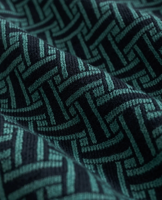 Polo Cardigan in Linen-Blend Tropical Basket Pattern