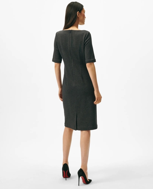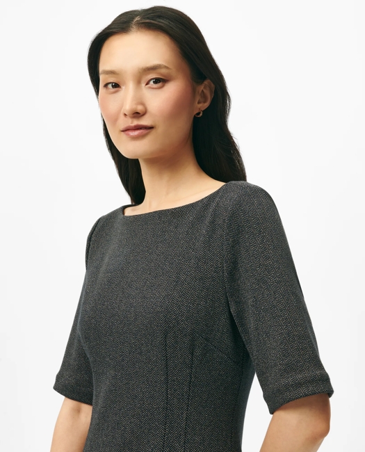 Boatneck Sheath Dress in Herringbone Cotton Blend