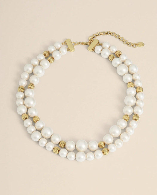 Double Strand Gold-Tone Faux-Pearl Necklace