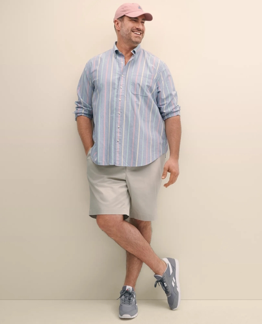 Big & Tall Stretch Supima® Cotton Non-Iron Pinpoint Oxford Ainsley Collar, Ticking Check Dress Shirt