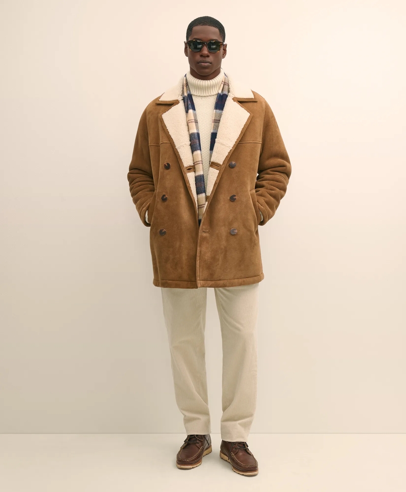 Our double-breasted coat gives new meaning to the term ruggedly handsome. Crafted from 100% authentic shearling, it's a standout piece that's meant to stand the test of time. Ultra warm, undeniably stylish, you'll be wearing it for many years to come.