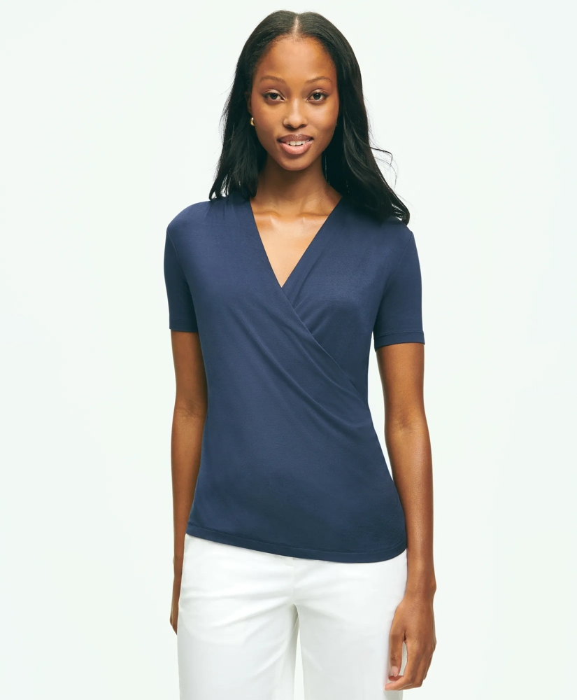 With a faux-wrap body and elegant shawl collar there's no where this piece can't go. Elevated draping in an ultra-soft fabrication means a piece that fits and flatters, whether you're at the office, on vacation, or checking out the brunch menu.