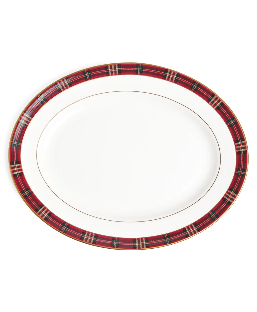 This exclusive collection of fine bone china featuring Brooks Brothers Signature Tartan pattern is proudly made by Lenox in the USA. United by a reverence for quality and craftsmanship, Brooks Brothers and Lenox developed this festive collection for those who appreciate the art of entertaining and enjoy memorable times spent with friends and family. This white bone china is still made with the same craftsmanship created by Walter Scott Lenox in 1889 using the finest materials from England. Our china is dishwasher safe, but not microwave, freezer or oven safe. Gift Boxed. Platter is 13 ½" x 10 ½".