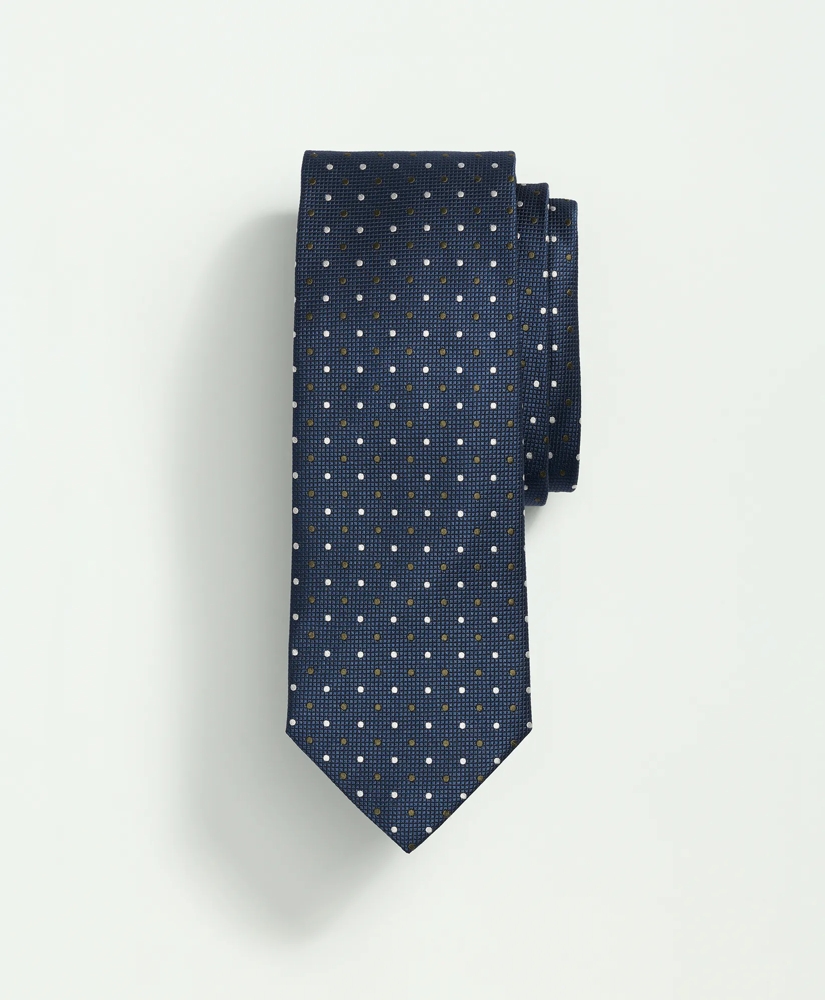 Italian-spun silk woven in a classic pattern showcases a beautifully updated contrast dot motif in this timeless tie.