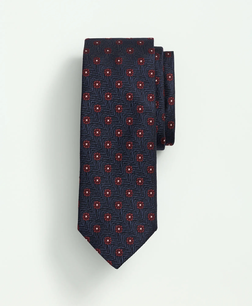 Italian-spun silk woven in a classic pattern showcases a beautifully inspired geometric floral motif in this timeless tie.